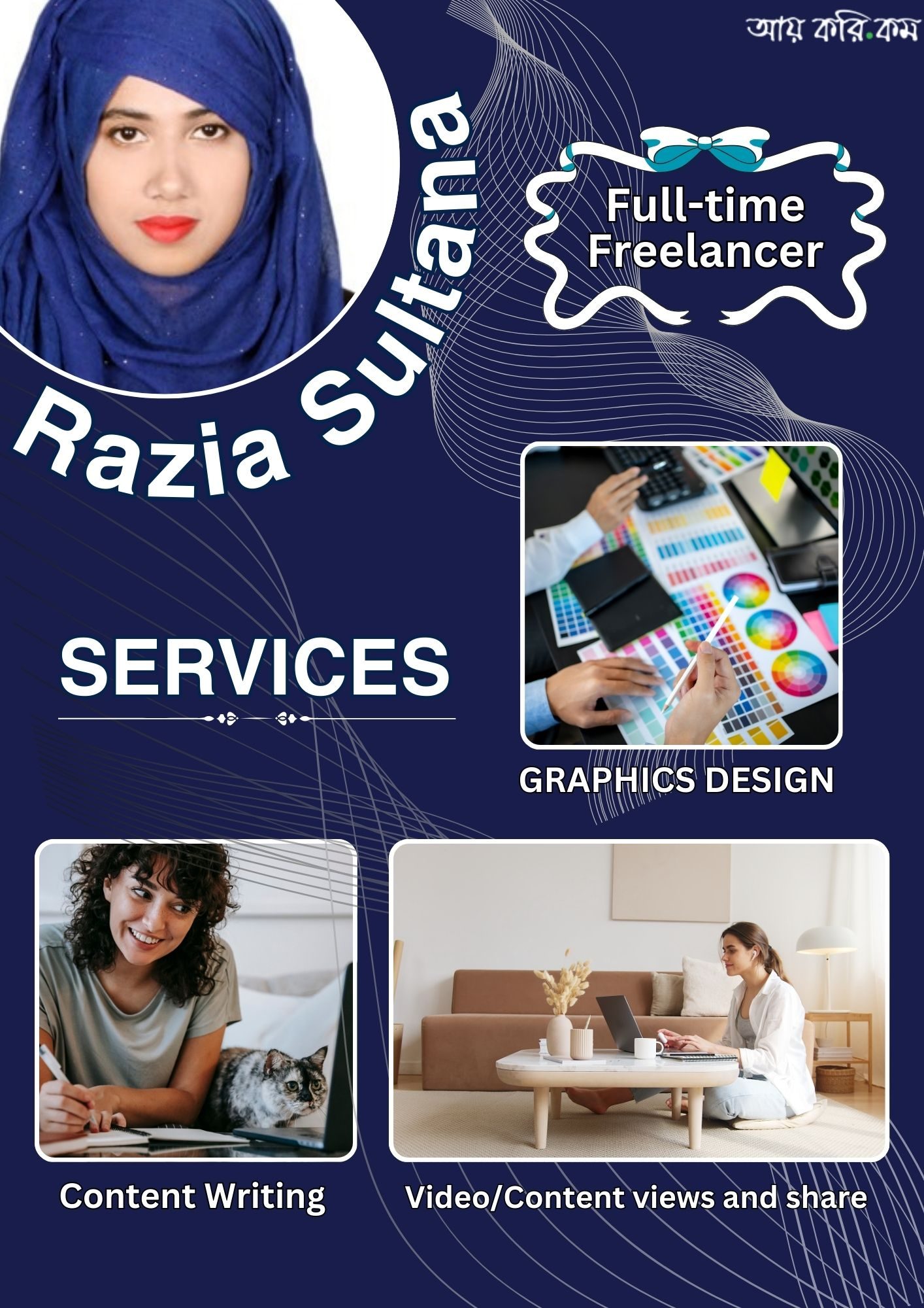 Now I work here as a full time freelancer. I am from 6th batch of ETDP and I have attended 11-day-session successfully. Now I can do graphic designs by canva. I can render you following services: